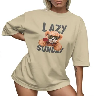 T-Shirt Oversize Luźna Koszulka Miś Róża Napis Xl Sukienka Jakość