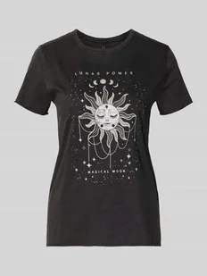 Damski t-shirt marki Only;Model „Lucy”;Efekt: jednolity kolor;Dopasowanie: Regularny krój;Aplikacja: Nadruk z motywem;Dekolt: Okrągły dekolt;Rękaw: