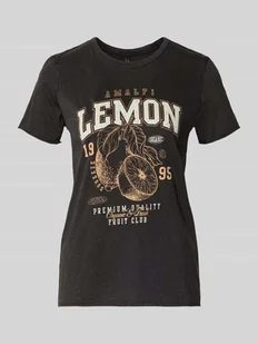 Damski t-shirt marki Only;Model „Lucy”;Efekt: jednolity kolor;Dopasowanie: Regularny krój;Aplikacja: Nadruk z motywem;Dekolt: Okrągły dekolt;Rękaw: