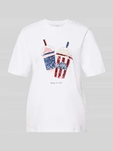 damski t-shirt marki Only;Model „Burst”;efekt: jednolity kolor;Krój: krój regular fit;Applikacja: obszycie perłami i cekinowe obszycie;dekolt: okrągły dekolt;rękaw: