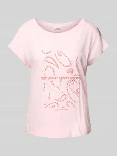 T-shirt damski s. Oliver RED LABEL;Efekt: Melanż;Krój: Krój relaxed fit;Aplikacja: Nadruk w artystycznym stylu, biżuteryjne perły;Dekolt:
