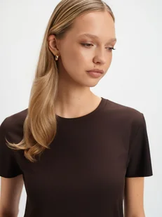 Top w kolorze czekoladowego brązu to elegancka i ponadczasowa propozycja dla miłośników minimalizmu. Wykonany z najwyższej jakości materiałów – zapewnia trwałość i komfort noszenia. Jego głęboki, brązowy kolor dodaje szyku i uniwersalności. Idealny jako baza do wielu stylizacji, sprawdzi się zarówno w casualowych, jak i bardziej formalnych zestawieniach.