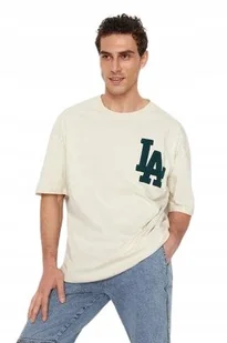 TRENDYOL BAWEŁNIANY T SHIRT Z NADRUKIEM LA W KREMOWYM KOLORZE XL 5AA