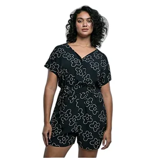 Urban Classics Damska koszulka z krótkim rękawem z wiskozy, czarny kwiat, XS