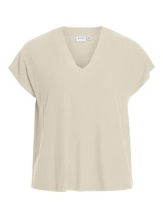 VILA BEŻOWY T-SHIRT LUŹNY DAMSKI GŁADKI Z KRÓTKIM RĘKAWEM 36 J7A