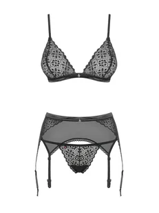 Obsessive 3-częściowy komplet bielizny biustonosz, pas do pończoch i stringi Shibu, Kolor czarny, Rozmiar S/M, Obsessive
