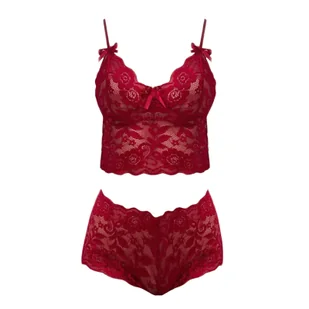Bordowy koronkowy zestaw bielizny - Bordowy S
