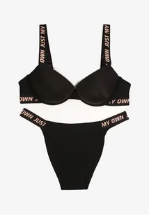 Czarny Komplet Ozdobiony Napisami z Biustonoszem z Efektem Push-Up i Majtkami Bralicia