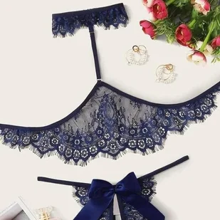 Komplet bielizny koronkowej - Niebieski S