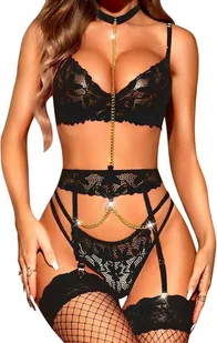 SEKSOWNA BIELIZNA ZESTAW KORONKOWY BIUSTONOSZ MAJTKI Z PODWIĄZKĄ CZARNE M