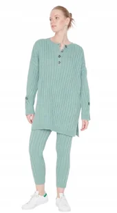 TRENDYOL ZIELONY KOMPLET SWETER I LEGGINSY PRĄŻKOWANY S 5AA
