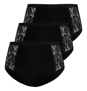 - Majtki damskie w zestawie 3 sztuk.- 3 sztuki bawełnianych majtek z wysokim stanem.- Wielopak fig idealnych na co dzień.- Majtki w kolorze czarnym.