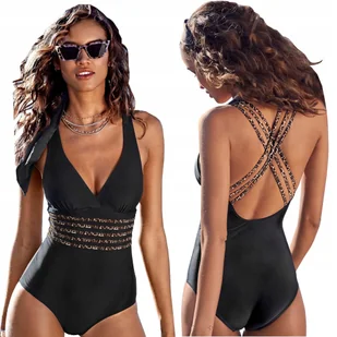 Jednoczęściowy Strój Kąpielowy Damski Wyszczuplający Kostium Boho Dekolt L