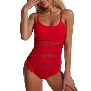 Jednoczęściowy strój z siateczkowym materiałem - Czerwony S