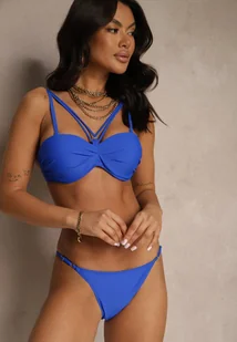 Niebieskie Bikini Majtki Typu Figi i Biustonosz z Ozdobnymi Paskami Fadelinna