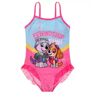 Śliczny jednoczęściowy strój kąpielowy w różowym kolorze, z nadrukiem wizerunków bohaterek serialu animowanego "Psi Patrol" - Skye i Everest. Kostium wykonany z elastycznego materiału zapewniającego komfort noszenia oraz idealne dopasowanie do ciała Twojej pociechy. Strój kąpielowy doskonale sprawdzi się podczas wodnych szaleństw na basenie czy plaży. Ze względów higienicznych bielizna nie podlega zwrotowi.