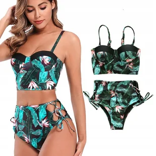 ✨ OPIS AUKCJI – BIKINI DWUCZĘŚCIOWE CZARNE L ✨ BIKINI DWUCZĘŚCIOWE L CZARNE KWIATY WYSOKI STAN MODELUJĄCY STRÓJ KĄPIELOWY BIKINI DWUCZĘŚCIOWE CZARNE L 40 LEKKOŚĆ, KOBIECOŚĆ I STYL – KLASYKA NA LATO Poznaj dwuczęściowy strój kąpielowy z wysokim stanem, który łączy nowoczesny design z tropikalnym charakterem. Czarne tło zostało ozdobione zielonymi liśćmi, co nadaje całości świeżości i letniego klimatu. Dobrze dopasowany materiał podkreśla atuty sylwetki, a wysoki stan majtek optycznie wysmukla talię i zapewnia pełen komfort noszenia. Subtelne wiązania po bokach dodają kobiecego uroku i pozwalają na indywidualne dopasowanie. STRÓJ KĄPIELOWY Z WYSOKIM STANEM