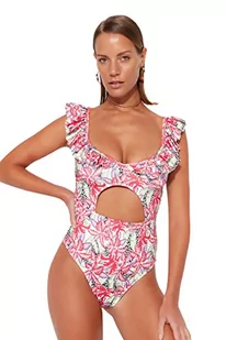 Trendyol Damski strój kąpielowy z dzianiny kwiatowej, różowy-wielokolorowy, 40, Różowy-wielokolorowy, 44