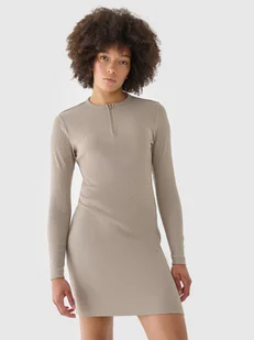 Jest rozciągliwa i miękka w dotyku. Sukienka dzianinowa midi nie posiada podszycia. Wygodne, długie rękawy. Okrągły dekolt z rozpięciem na zamek. Damska sukienka - CECHY: