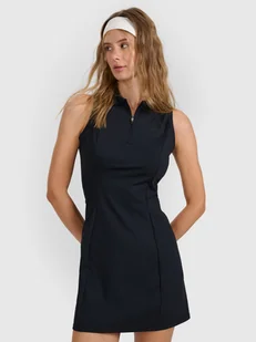 Sukienka tenisowa dla kobiety - CECHY: krój slim – dopasowany fason podkreślający sylwetkę dzianina interlock – gładka, miękka i elastyczna struktura materiału elastan 17% – zapewnia wysoki stopień rozciągliwości i komfort noszenia syntetyczny materiał – trwały i łatwy w pielęgnacji długość przed kolano – uniwersalna długość odpowiednia na różne okazje tenisowy kołnierzyk – sportowy styl z funkcjonalnym zapięciem na zamek fason bez rękawów – swoboda ruchów i lekkość zakres rozmiarów XS–L – dopasowanie do różnych typów sylwetek jednolita kolorystyka – łatwa do zestawienia z innymi elementami garderoby brak podszycia – lekka konstrukcja idealna na cieplejsze dni Sukienka sportowa damska idealnie sprawdzi się jako element zarówno casualowych, jak i sportowych stylizacji na co dzień. Posiada dopasowany krój, który przylega do ciała oraz długość przed kolano. Sukienka dla kobiety jest wykonana z materiału syntetycznego, który zapewnia trwałość i jest łatwy w pielęgnacji. Dodatek elastanu (17%) sprawia, że materiał jest rozciągliwy i wygodnie układa się na sylwetce.