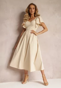 Beżowa Taliowana Sukienka Maxi z Falbanami Giftis