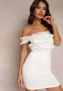 Biała Dopasowana Sukienka Mini z Falbanką Udirda