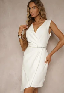 Biała Sukienka Vices Dopasowana Asymetryczna z Błyszczącą Wstawką Tolivena