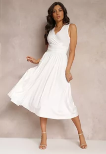 Biała Sukienka z Kopertowym Dekoltem i Plisowanym Dołem Anamarie