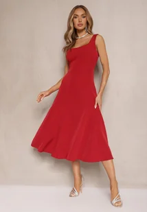 Bordowa Klasyczna Sukienka o Rozkloszowanym Kroju Delure