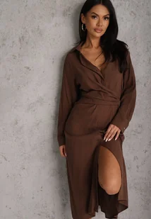Koszulowa Sukienka z Wiskozy z Asymetrycznym Drapowaniem i Guzikiem Hetasa to must-have w Twojej kolekcji! Ta elegancka sukienka łączy w sobie swobodny styl z odrobiną ekstrawagancji dzięki wyjątkowemu marszczeniu oraz gumce z tyłu w talii, które doskonale podkreślą Twoją talię. Sukienka posiada również praktyczne kieszenie. Nie jest wyposażona w poszewkę. Zestaw ją z ramoneską i sneakersami na co dzień, a wieczorem postaw na eleganckie szpilki, aby podkreślić swoją pewność siebie. Wygodny dekolt oraz długie rękawy sprawiają, że będziesz wyglądać zjawiskowo i czuć się wyjątkowo w każdej chwili