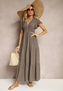 Ciemnobeżowa Sukienka z Wiskozy Heeny