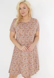 Ciemnobeżowa Trapezowa Sukienka Mini w Kwiatowy Wzór Aganis