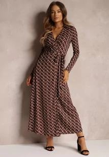 Ciemnobrązowa Sukienka Kopertowa Thrasise