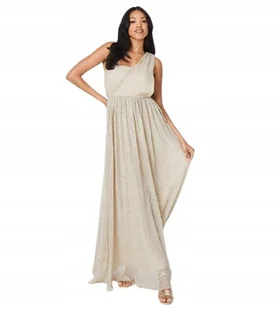 Coast Beżowa Sukienka Maxi na Jedno Ramię Błyszcząca 38 Hke