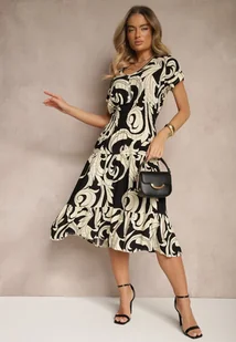 Czarna Bawełniana Sukienka z Abstrakcyjnym Motywem i Guzikami Talivea