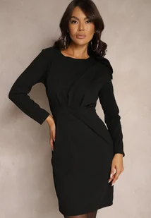 Czarna Koktajlowa Sukienka o Dopasowanym Kroju z Kokardą na Ramieniu Innathia
