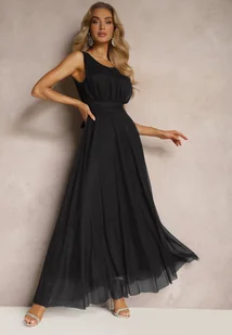 Czarna Koktajlowa Sukienka z Tiulowym Dołem Bez Rękawów Elastar