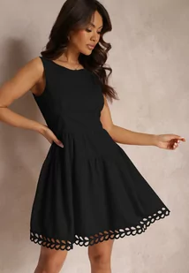 Czarna Taliowana Sukienka Mini z Ozdobną Koronką Veronisa