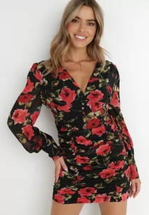 Czarna Sukienka Dopasowana z Marszczeniem Achomene
