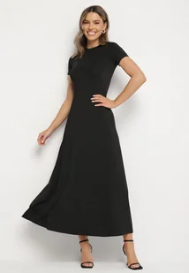 Czarna Sukienka o Taliowanym Kroju z Krótkim Rękawem Liravise