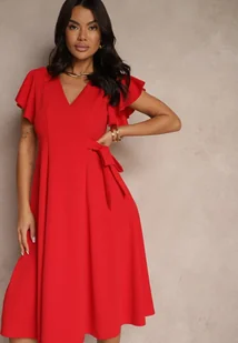 Czerwona Rozkloszowana Sukienka Kopertowa z Wiązaniem w Talii Dannila