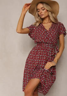 Czerwona Letnia Sukienka Kopertowa Wiązana w Pasie z Wiskozy Meridase