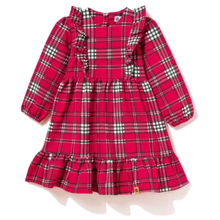 Czerwona sukienka dziewczęca w elegancką kratę to idealna propozycja na święta, uroczystości rodzinne i zimowe sesje zdjęciowe. Uszyta w Polsce z miękkiej, przyjemnej w dotyku bawełny zapewnia komfort przez cały dzień — jest lekka, naturalna i odpowiednia także dla bardziej wrażliwej skóry. Klasyczna czerwona krata z dodatkiem zieleni i bieli nadaje sukience wyjątkowego, świątecznego charakteru. Z przodu model zdobią urocze falbanki, a szeroka falbana na dole pięknie podkreśla rozkloszowany krój, który porusza się wraz z dzieckiem i wygląda niezwykle efektownie. Długi rękaw zakończony jest delikatnym ściągaczem, dzięki czemu rękawy dobrze trzymają się na miejscu.