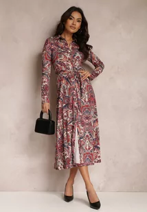 Czerwona Sukienka Koszulowa z Długim Rękawem i Wiązanym Paskiem Limiria