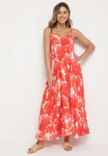 Czerwona Sukienka z Wiskozy z Abstrakcyjnym Wzorem Meramara