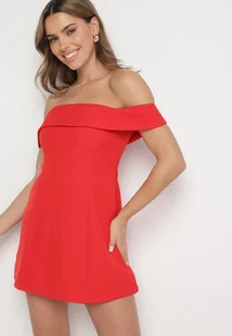 Czerwona Taliowana Sukienka z Dekoltem Bandeau z Zakładką Zelzemis