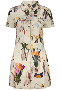 KRÓTKA WZOROWA SUKIENKA, CIENKA, KRÓTKIE RĘKAWY, KOŁNIERZYK WŁOSKI, GUZIKI, 2 KIESZENIE, NADRUK, LOGO