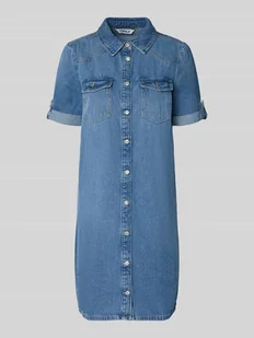 Sukienka jeansowa damska od ONLY;Model „LISA”;Efekt: jednolity kolor,;Dopasowanie: przylegające do ciała;Długość: Mini;Dekolt: Dekolt w serek;Aplikacja: