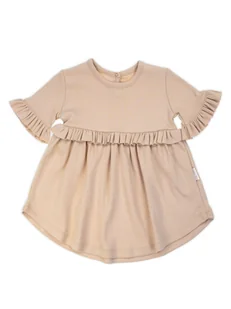Dziewczęca sukienka z krótkim rękawkiem i falbanką beżowa Nicol,r.74