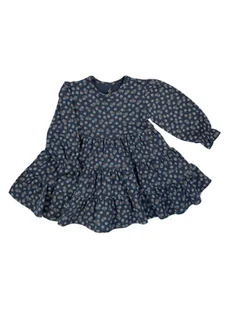 Wyprodukowano w Polsce Piękna sukienka uszyta z granatowej bawełny w kwieciste wzorki. Sukienka na długi rękaw, rękawki w dolnej części wykończone są gumką ,...